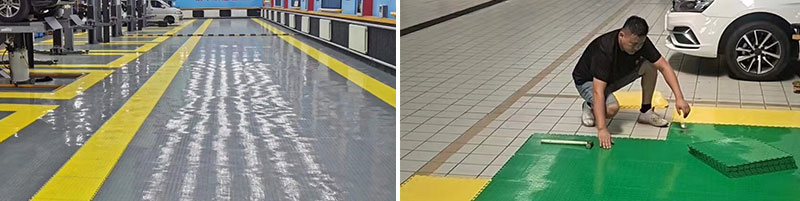 軟質絕緣地板能將每個獨立的地板快速拼裝成整體地面,專利型鎖扣結構連接能力更強,可承受叉車的來回碾壓。施工過程中無需膠黏劑等材質,具有施工簡單快速、色彩絢麗、美觀大方、可移動性強、可重復使用等特點。