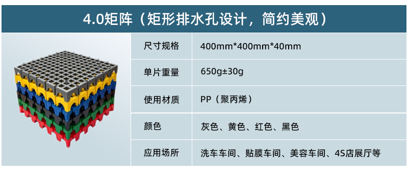 1.貫穿式鎖扣設(shè)計(jì),每片可單獨(dú)取出,拆裝方便省力。 2.矩陣式直排大通道支撐,可實(shí)現(xiàn)免拆沖洗清理淤泥。 3.大孔徑透泥污功能強(qiáng),更適用于預(yù)洗工位。 4.矩形排水孔設(shè)計(jì),簡約美觀。 5.色彩豐富,可設(shè)計(jì)性強(qiáng)。